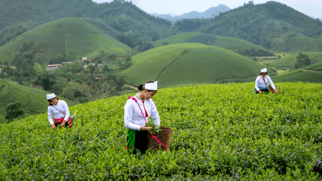 青々とした茶畑に広がる香りと風の中で、
