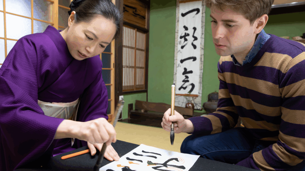 墨の香りに包まれながら、筆を手に取り、